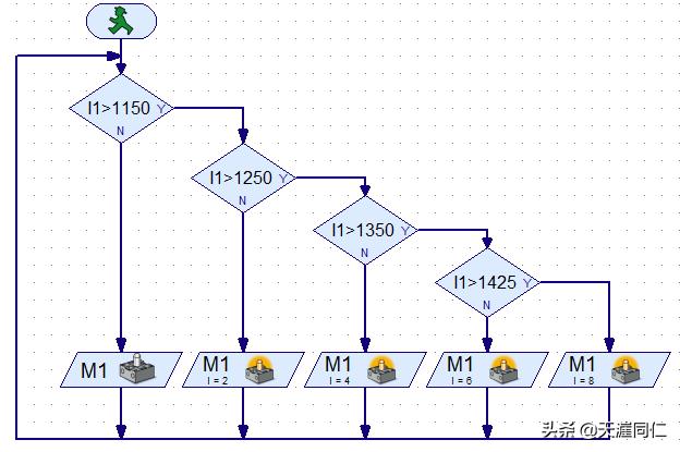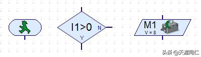 建立新程序,將"開始"模塊、"模擬分支"模塊和"電機輸出"模塊拖拽至程序窗口。