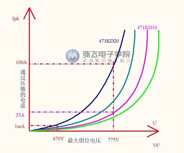 從上圖看471KD10與471KD20的數(shù)據(jù)來比較,我們可以看出允許的大交流與直流電壓都相同,但是大的鉗位電壓上面我們可以看出KD10的與KD20通過的電流時25A與100A,這說明我們在同一個電路上,打同一等級的雷擊浪涌時,KD10的鉗位電壓要比KD20的高。