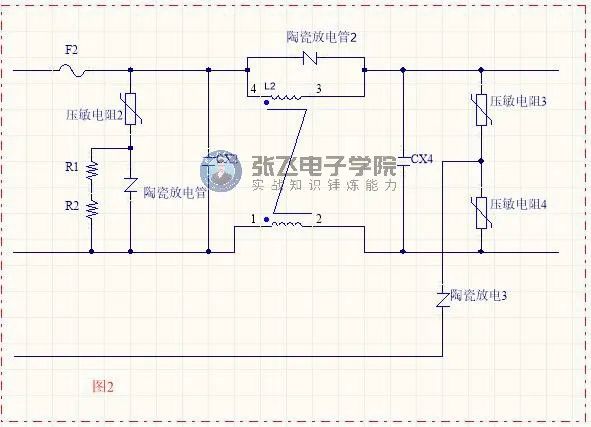 共模電感上并聯(lián)陶瓷放電管與L相與N相對大地跨接壓敏電阻串陶瓷放電管一樣的作用,有時可能只會出現(xiàn)一組電路。作用都時用來防共模雷擊。(文章源于張飛電子學(xué)院,如有侵犯,煩請告知)
