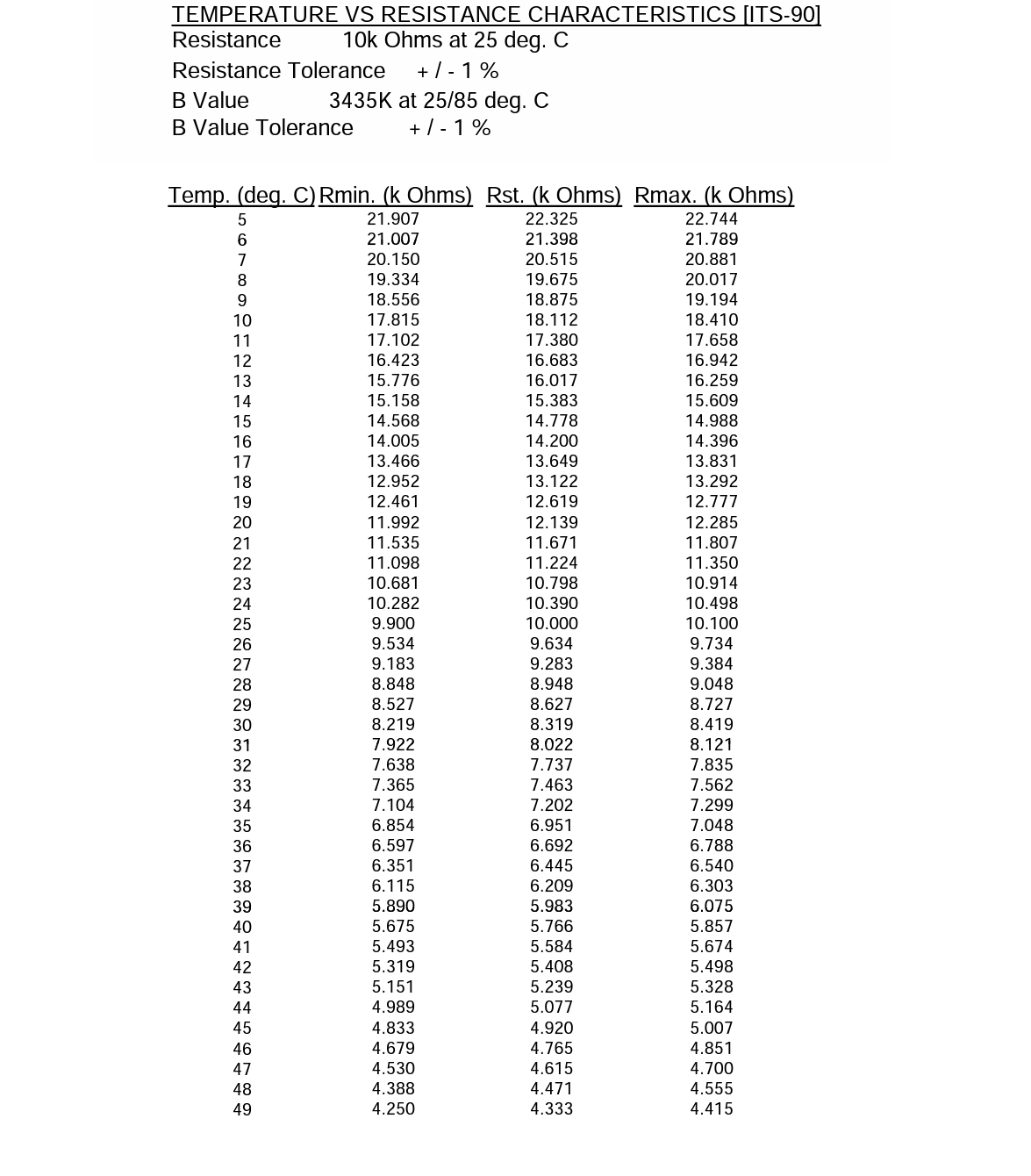 3. 電流和電壓限制:NTC熱敏電阻B值表通常會指定一定的電流和電壓限制,需要根據實際應用確定是否符合要求。