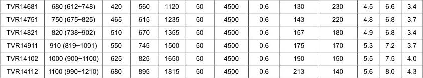 壓敏電阻片徑: Φ14mm 標(biāo)稱壓敏電壓(@1mADC): 680V(612~748)