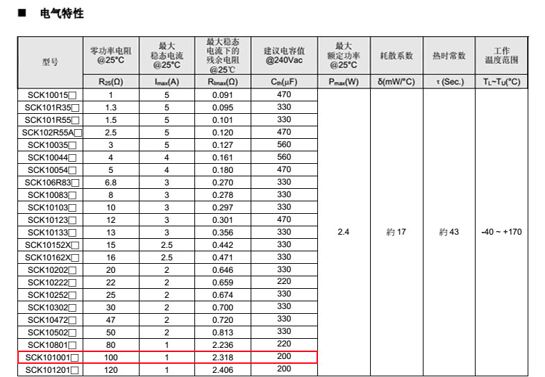 熱敏電阻型號(hào):