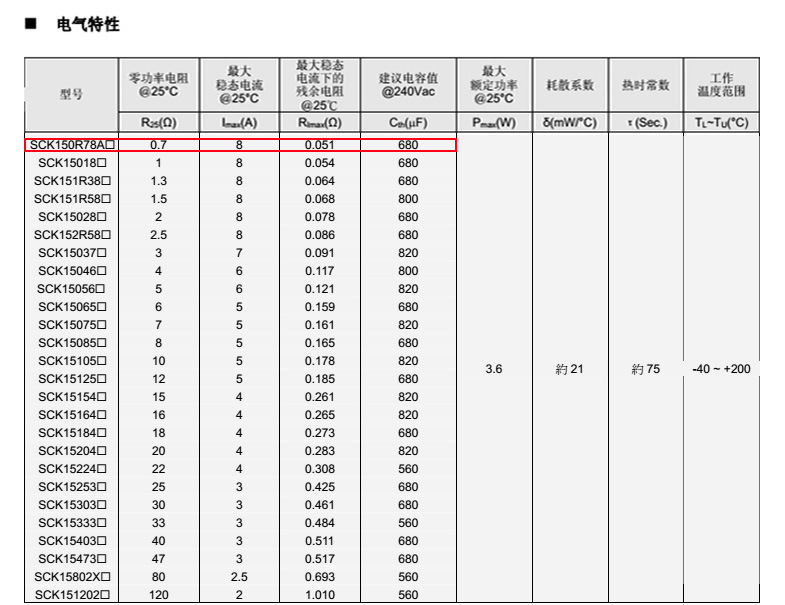 系列 D Lmin. d P Amax. Tmax. W SCK15 16.5 29 1.0±0.02 7.5±1 16.5 請(qǐng)見(jiàn)電氣特性表 請(qǐng)見(jiàn)電氣特性表