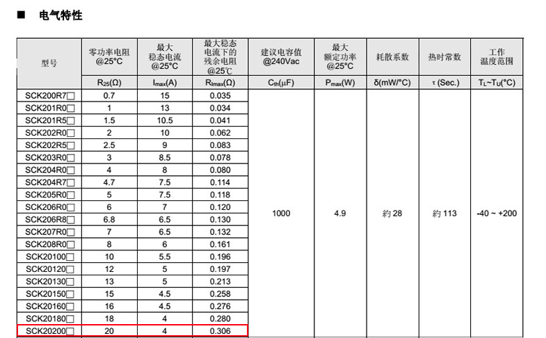 熱敏電阻: 穩騰 熱敏電阻型號: SCK20200MSY 熱敏電阻片徑: Φ20mm 零功率電阻@25℃: 20Ω 工作溫度范圍: -40℃±200℃ 儲存溫度范圍: -40℃±85℃