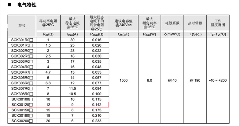熱敏電阻: VT 熱敏電阻型號(hào): SCK30120MSY 熱敏電阻片徑: Φ30mm 零功率電阻@25℃: 12Ω 工作溫度范圍: -40℃±200℃ 儲(chǔ)存溫度范圍: -40℃±85℃