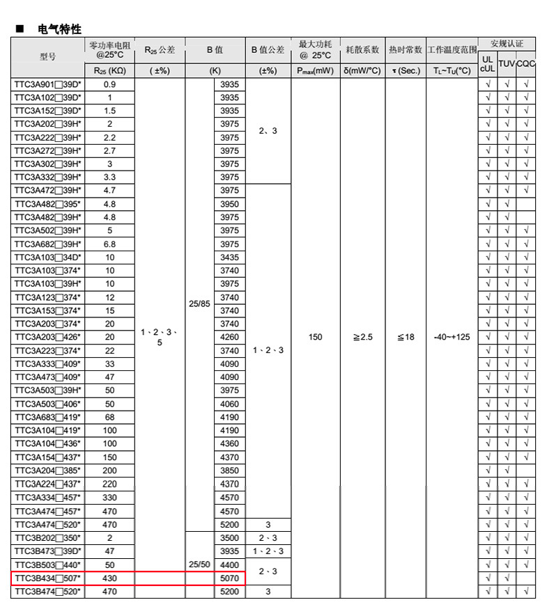 熱敏電阻型號: