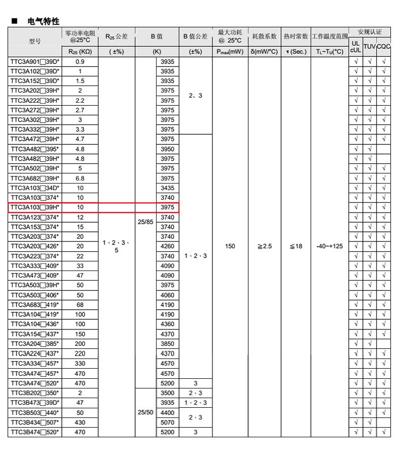 熱敏電阻型號:
