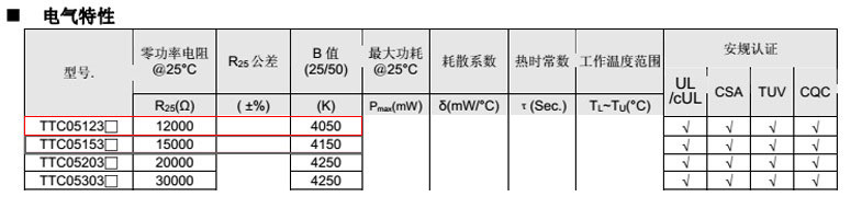 熱敏電阻型號: