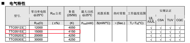 熱敏電阻型號(hào):