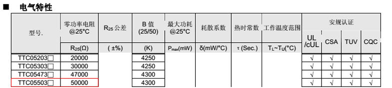 熱敏電阻型號: