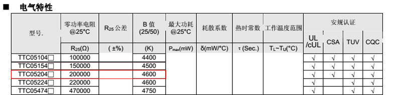 熱敏電阻型號:
