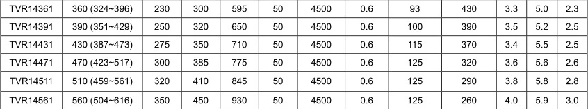 壓敏電阻片徑: Φ14mm 標稱壓敏電壓(@1mADC): 560V(504~616)