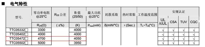 熱敏電阻型號: