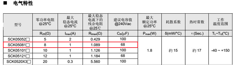 系列 D Lmin. d P Amax. Tmax. W SCK05 5.0~7.0 26.5 0.6±0.02 5±1 9.0 請(qǐng)見(jiàn)電氣特性表 請(qǐng)見(jiàn)電氣特性表